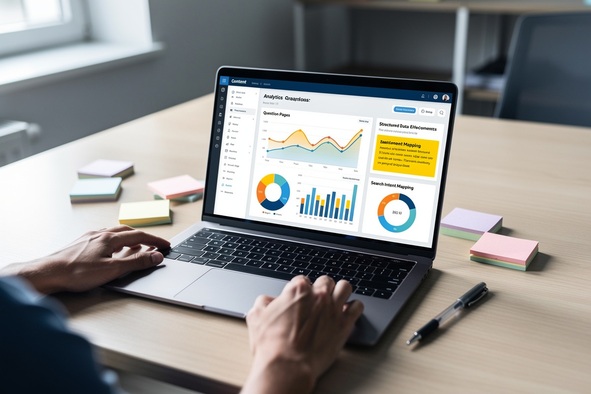 - Contenu : transforme 5 à 10 pages déjà bien positionnées en réponses courtes, conversationnelles et orientées question.